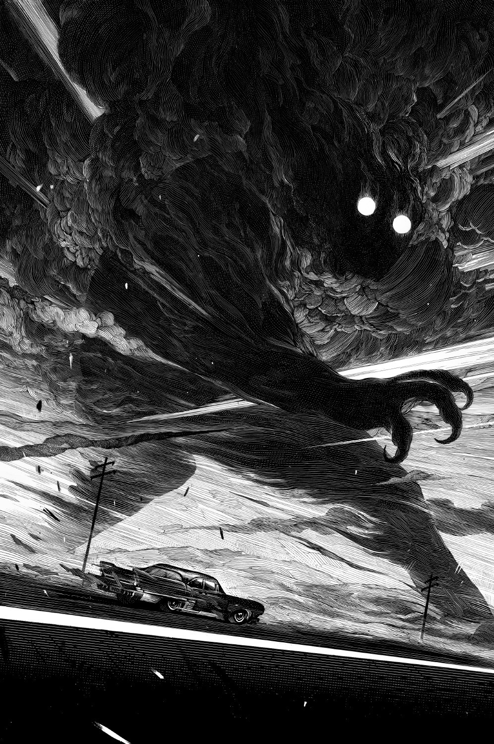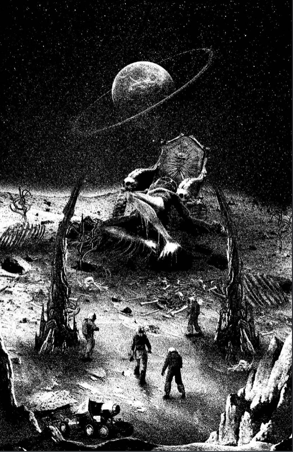 There's a god shaped like a giant wolf the color of nightsky out there, in the darkness. Urania foresaw its arrival and sort of "caught it in her eye", so the wolf can't attack as long as she doesn't break eye contact.