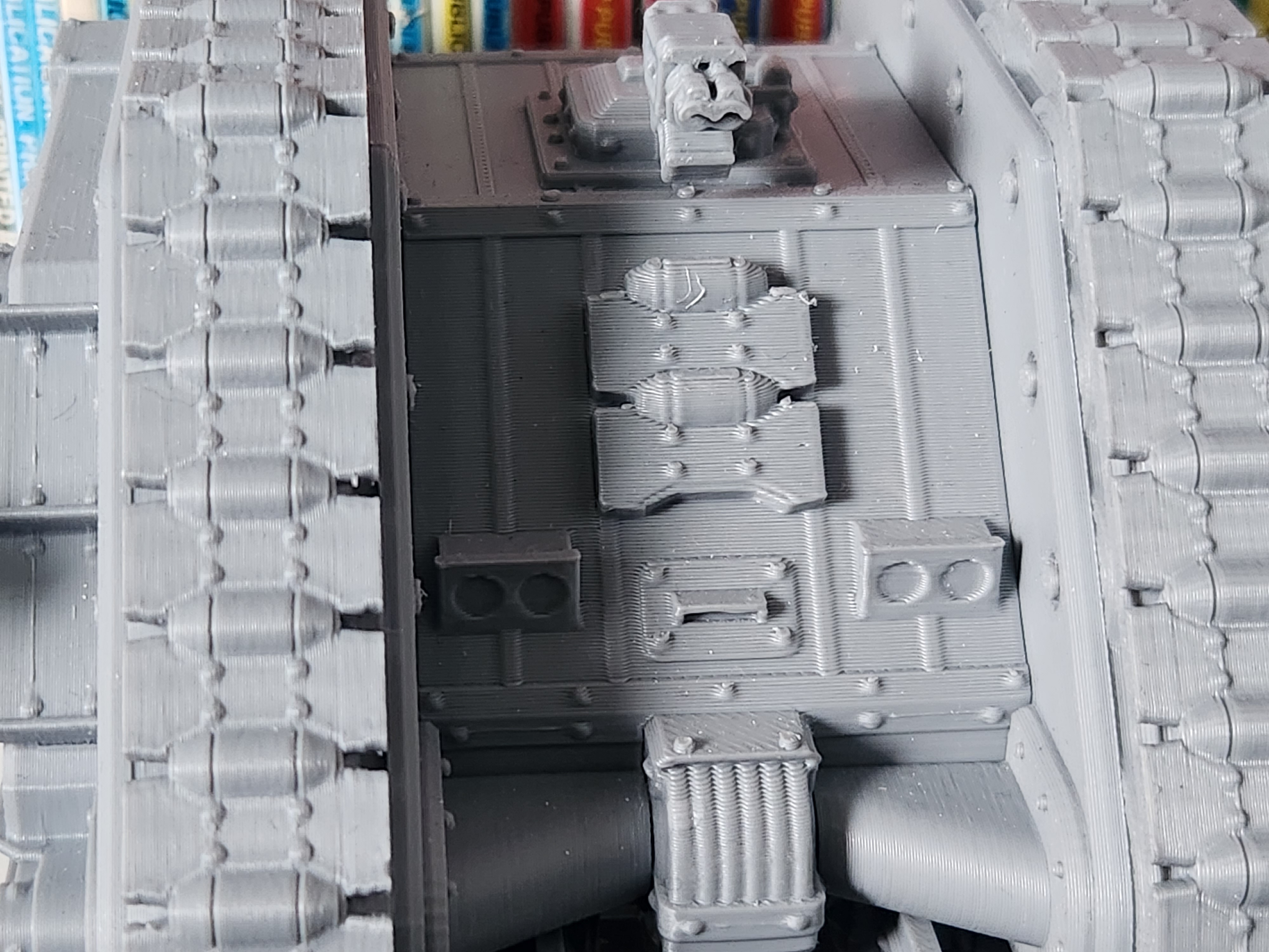 >>96608343As you can see, if you go really close you can see the lines, but it's alright as a cheap alternative for the real thing if you just want it for playing games. I've been told that it's a bit larger than the real thing, but I don't have a real Land Raider to compare it.
