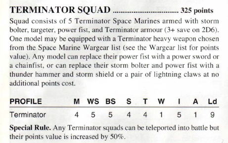 >>96621050>>96621569Nah. The 'prototypes' just had PG&SB... then they released some 1st ed Space Hulk plastic (PG&SB with a 'Heavy Flamer' sleeve). After that there was the Terminator Squad box that only had a power sword for the Sergeant.. A later Cyclone launcher Terminator and a blister of Assault Termies (Lightning claws and Thunder Hammer). RT also had Grey Knights (with Nemesis Halberds or Swords), Inquisitors (no power weapons), Traitor Terminators (just had Chaos versions of the imperial weapons... but also a Daemon Sword) and, lastly, the Space Wolf Terminator box.The first Terminator Squad to get the option of power weapons may have been the 2nd ed Chaos Terminators who had Combi-Bolters and stuff to differentialize them from loyalists.