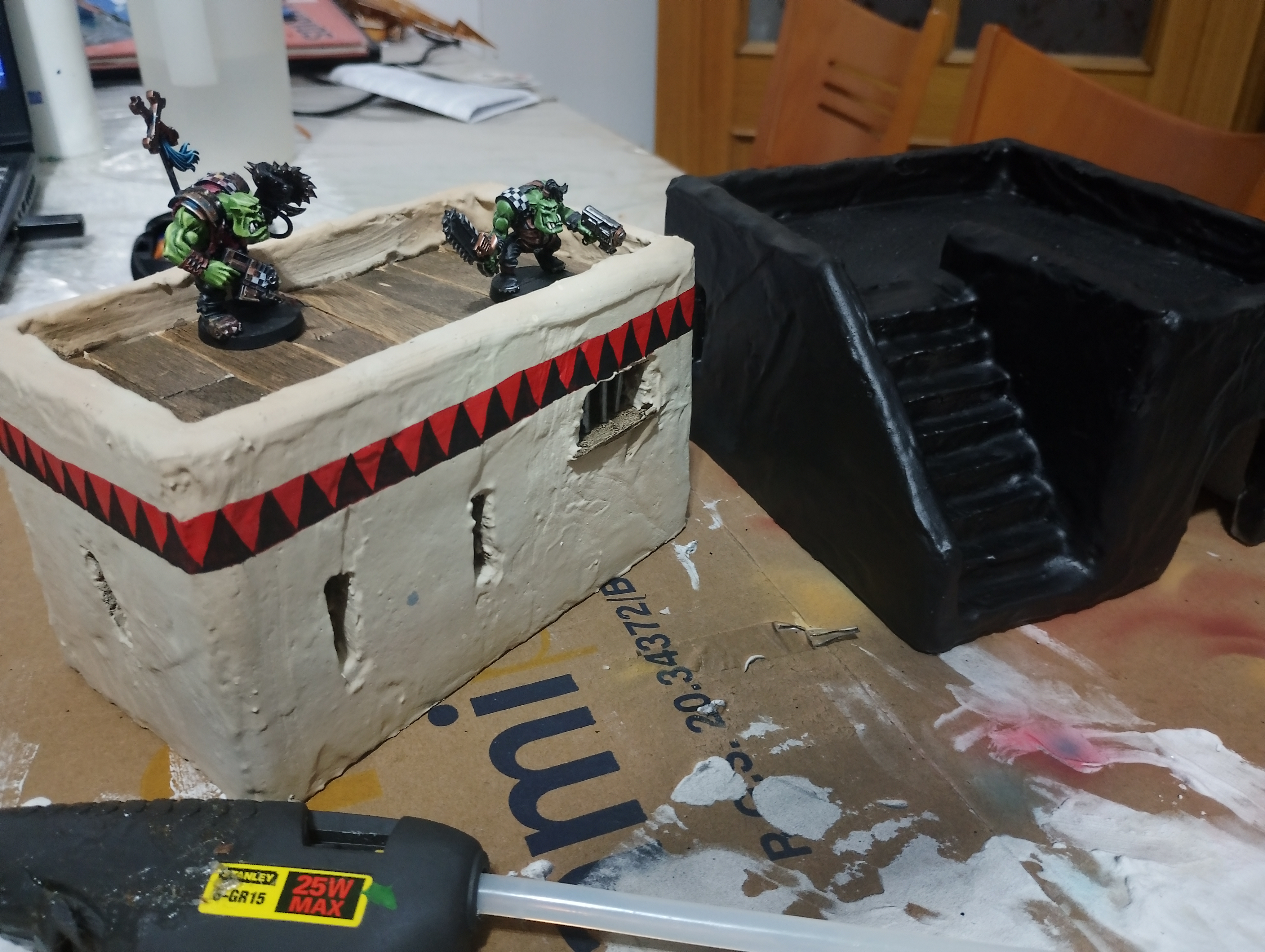 >>96730367Looks good mate. Add some checks and dags around the roofs and/or doors, a few glyphs and it'll look proper orky.