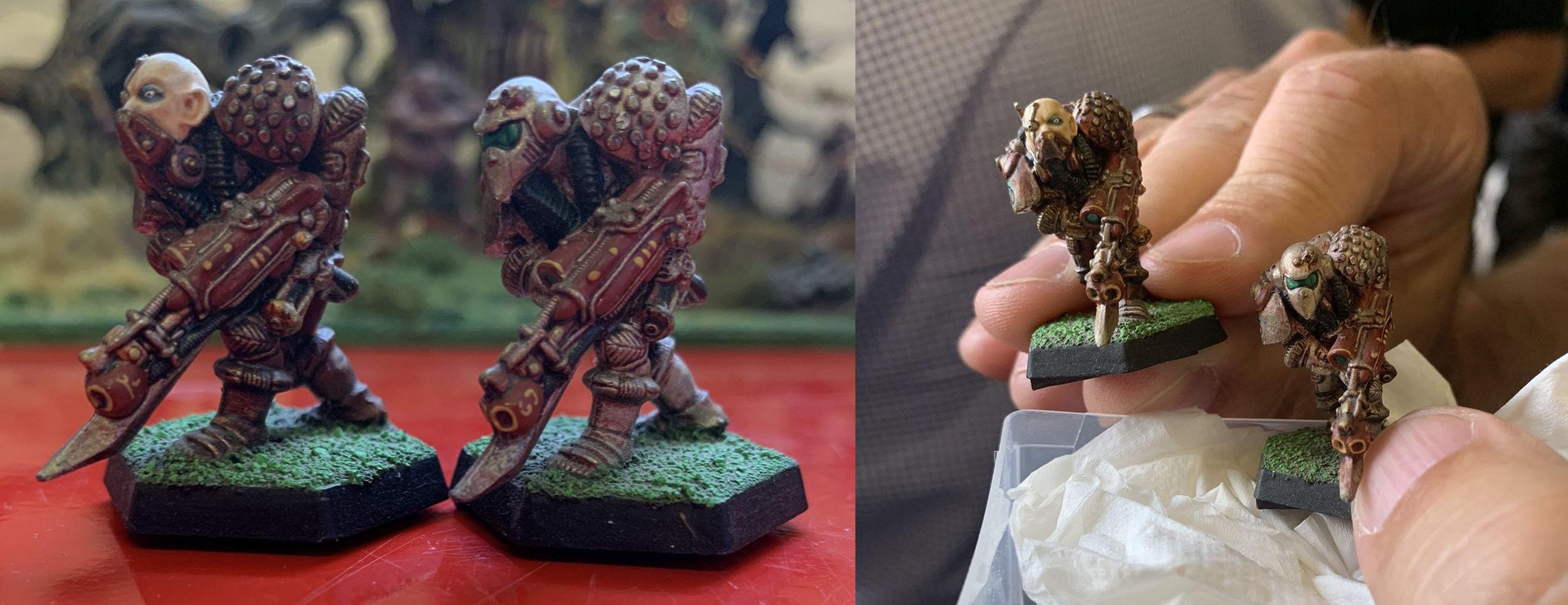 I haven't been posting for a while, but here's my current wip. I hope I don't get chewed too hard for this sacrilege but I got couple more advanced space crusade scouts in bad condition so I did some era appropriate conversions since I wanted more heavy weapon options.