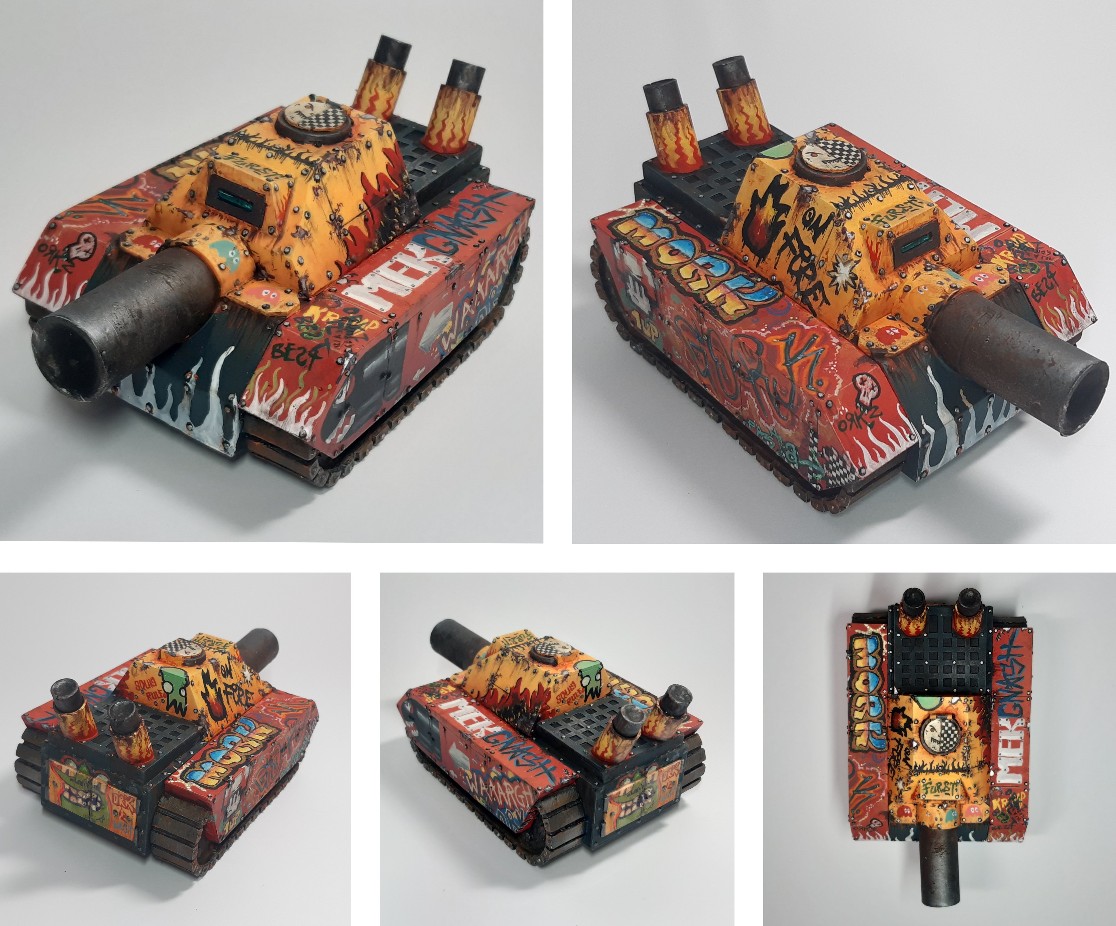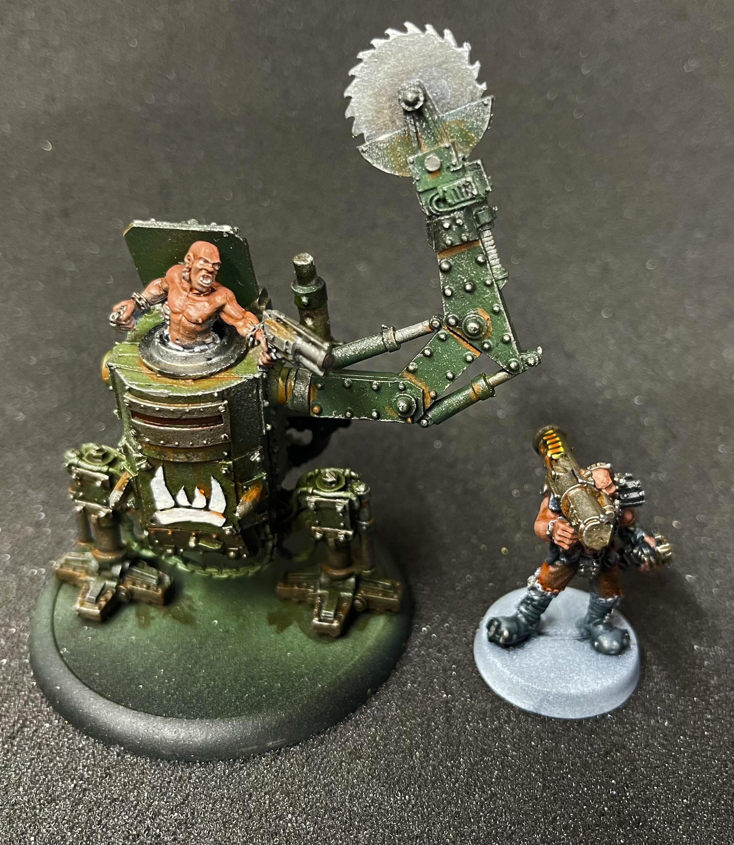 >>96735669>>96735675Sweet. I like the rocket-pod shot glass.>>96735708Love the tank and the fuel warning label on the barrel.>>96736633I recast every Digga sculpt and chopped them all up with a mix of Goliath parts, bashed a bunch of GorkaMorka and Guard vehicles, and now I run them as Orks or Guard depending on the day.
