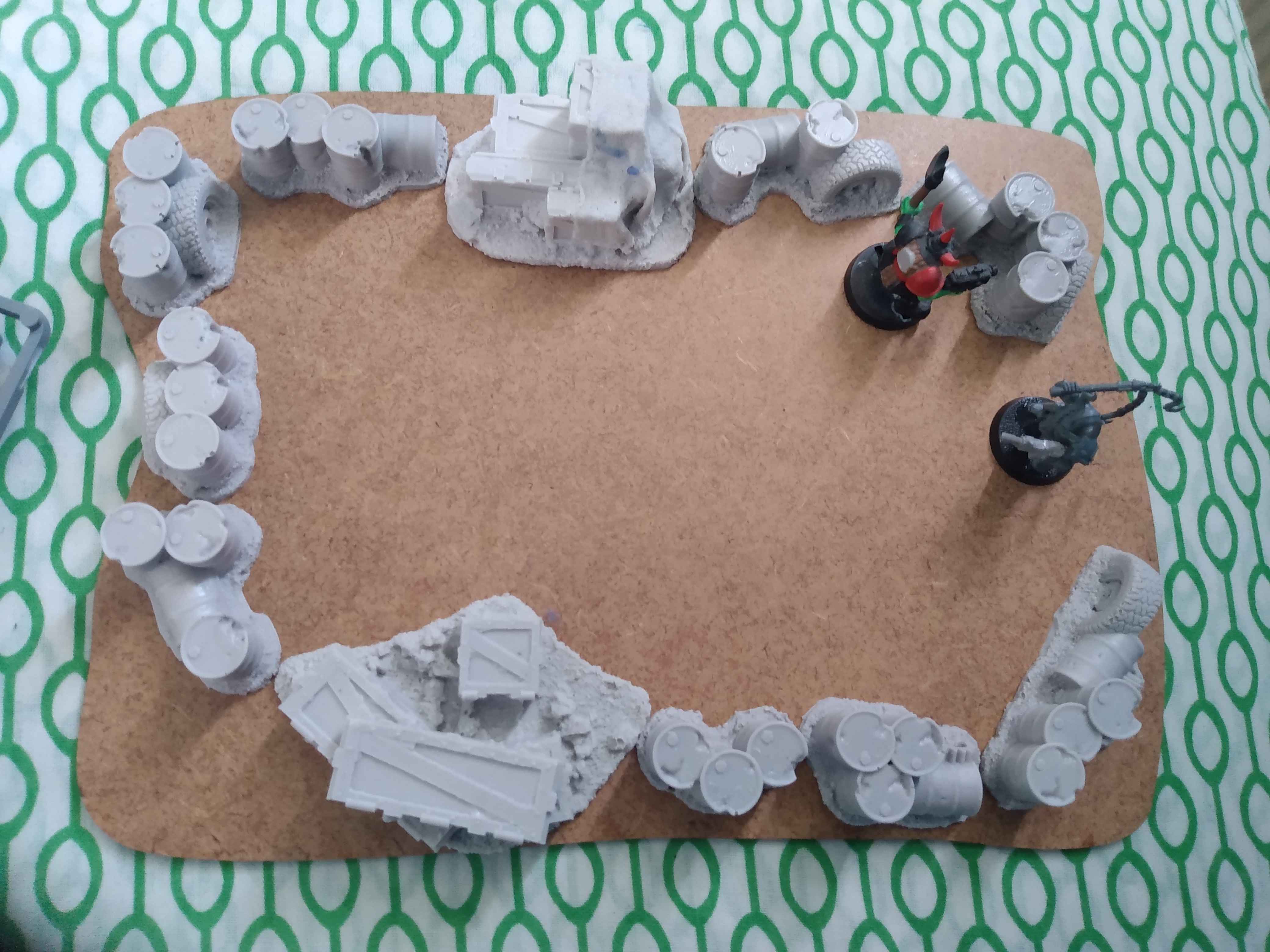 >>96690361Quick mockup of a ruined shanty town, the MDF is a bit small so i'll get some pipe and make this into an area of detritus instead.