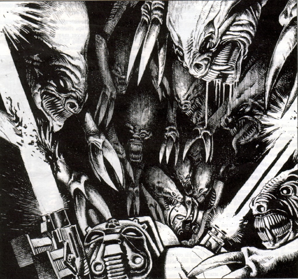 >>96702010>Why do melee specialized units even exist? What's even the point with these guns around?If your melee unit is good enough, and you can get them stuck in without getting shot to pieces, the enemy pretty much doesn't stand a chance.Purestrain Genestealers, for example, are holy terrors in melee in both First and Second Edition. Most models roll one die. A Purestrain rolls four dice and *then* adds his WS of 7! Unlike later editions where you throw dice and see how many hits you get, Second Edition used a system of contested rolls where the guy who scores higher hits the enemy, and the guy who scores lower doesn't hit at all.This meant that if Genestealers got into combat with a Tactical Squad, for example, almost every Genestealer is going to be inflicting multiple S6 hits with a -3 save modifier on a Space Marine who only has one Wound.This is a pretty extreme example, but even a Space Marine Assault Squad - where each model will likely be rolling two dice for carrying both a pistol and a hand weapon - can make a big difference compared to those poor ladz who are really screwed if their only die comes up a '1' or a '2'!