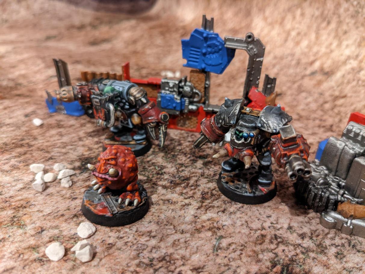 >>96735669>>96735675Sweet. I like the rocket-pod shot glass.>>96735708Love the tank and the fuel warning label on the barrel.>>96736633I recast every Digga sculpt and chopped them all up with a mix of Goliath parts, bashed a bunch of GorkaMorka and Guard vehicles, and now I run them as Orks or Guard depending on the day.