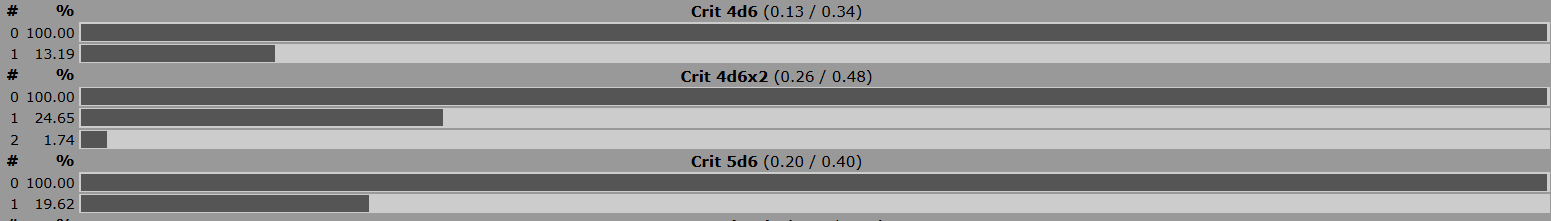 >>96646182>TQ1It's probably one my least explored genres and I want to change that. And like Mike I crew up on a lot more anime cyberpunk instead of western cyberpunk. >>96653654I like your style. I know RED pretty well so if that's your system of choice I could suggest ways to max crit chances that are totally legal within the rules, then suggest more that are just unhinged tech upgrades perfect for a Terminator. I'm actually surprised that 2077 Adam Smasher didn't just get 'and if he deals damage there is a crit too'. I'm desperately holding out for hardened bosses and mega-bosses that will just give ref's carte blanche to make up bullshit boss-only abilities.Anyway, pic related is the best crit rates in RED. There are also martial arts that let your NPC get a crit but without the +5 damage by doing some tricks, and all sorts of flavors of EMP (grenades, guns, and Black Chrome had EMP fists). Crits are your best way to get destructions, but if you want to tech-upgrade or bump a weapon up by a price category you can do a lot more.