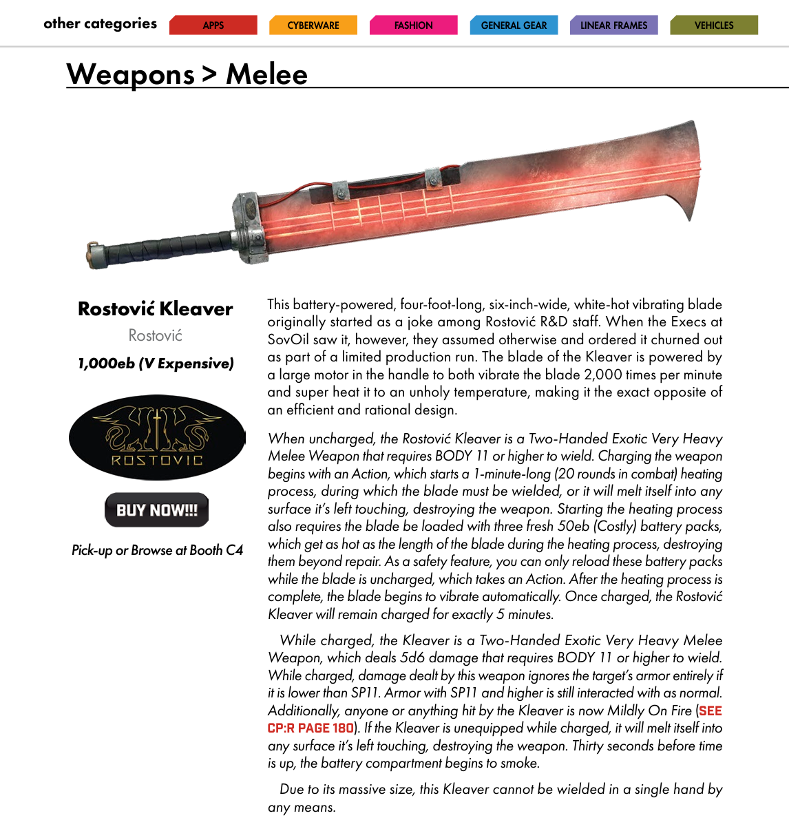 >>96763847Yeah, I know about that one. The question still stands though. Why is this the hill people want to die on? From a gameplay health perspective, isn’t it easier to use a unified system for both melee and ranged attacks rather that the 3 versions we currently have.1. Melee attacks use DEX+EVA2. Ranged attacks use a DV table that takes into account weapon range bands3. Unless you have 8 REF, then you use DEX+EVA (not even REF+EVA which would make more sense). Also, now weapon range doesn’t matter for some reason, so it’s easier to hit someone 800 meters away if they are evading than if they aren’t. Yep, good design there.Reflex Coprocessor feels to me like the Devs realized after release that they did a stupid and tried to correct it with cyberware rather than fix the actual problem. Because they never want to seem to correct problems in the core book. Just release new content that allows players to bypass the issue with items. There are multiple items in DLC that seem to exist solely to do this.