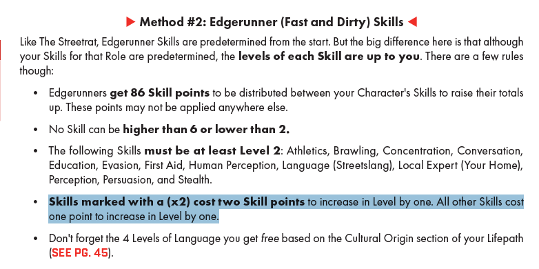 >>96793233>>96795051Are you serious right now? It's literally right in the section on skills in character creation. It's not even hidden. Yes, you pay twice as many points for 2x skills. There are no 3x skills, only role ability levels which you can't buy at character creation.