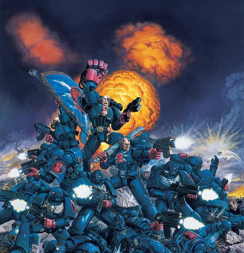 >>96686759I remember seeing this piece of art in the little mini rules booklet that came with the Battle for Macragge starter set, it's still the first image I think about when I think "space marine"The Crimson Fists really do have so many iconic depictions, would be cool if they still gave them the limelight like the used to.