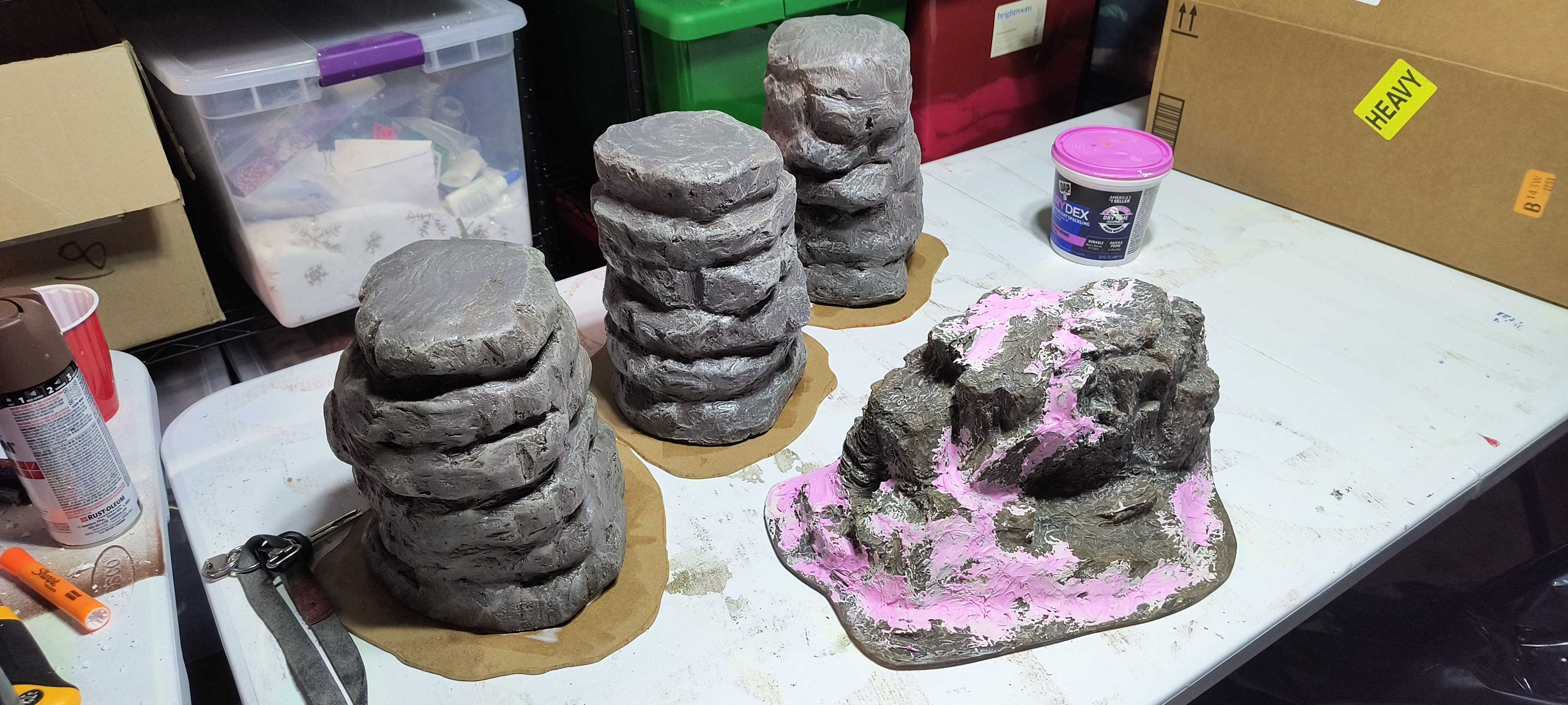 I got my son interested in wargaming so we also started doing terrain together. Made some cliffs from XPS plastic and I tried making some trees from flock and jute rope. I also took some old tin cans and sprayed them with a metal primer to make some gypsy solos for gaming boards. My next idea is to make more rock piles and craters for lighter scatter terrain.