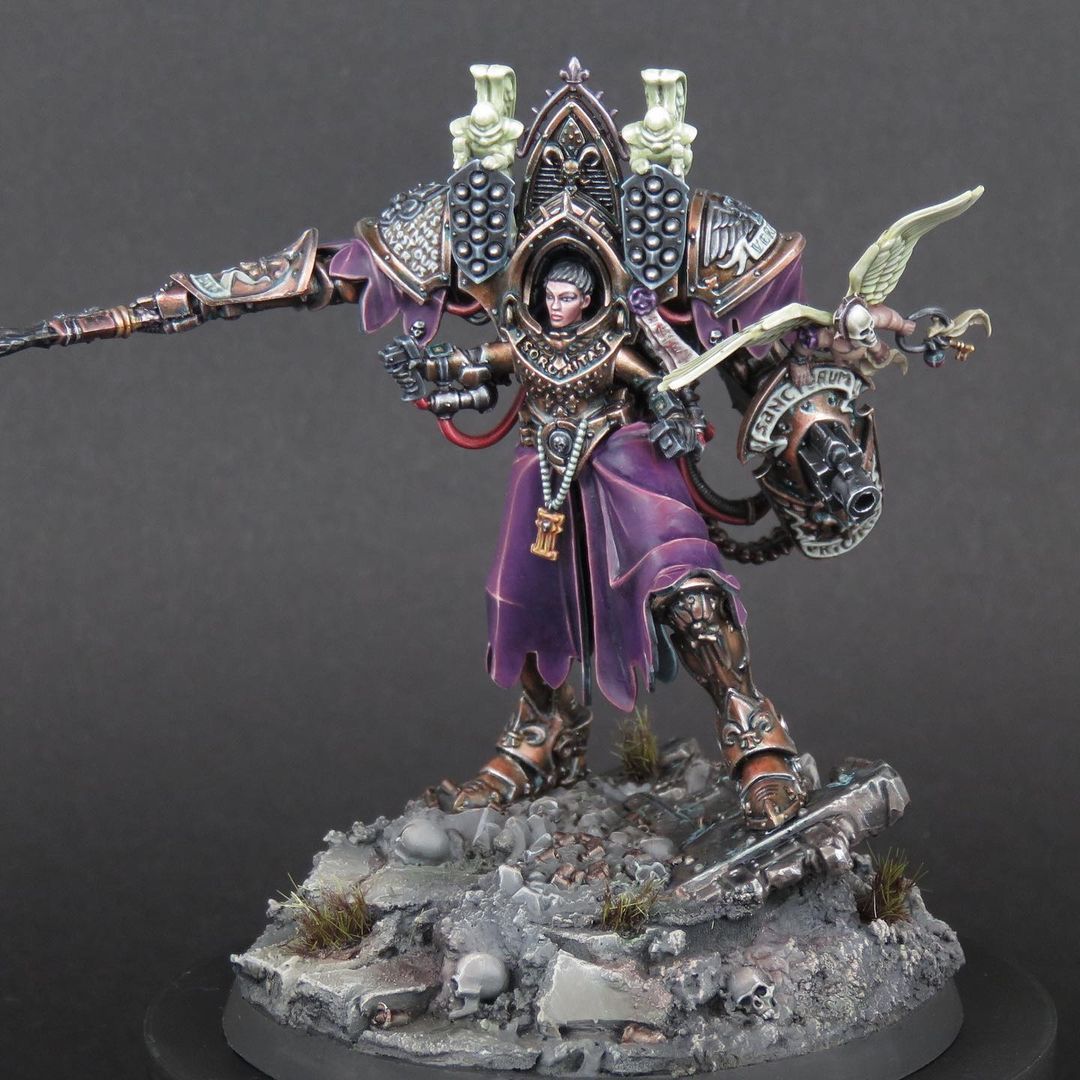 >>96725915Just had a look at the rules, they seem neat enough. Increases the cost of enemy stratagems if they are 12 inches from him and then if hes targeted by psychic attacks the attack subtracts 1 from both hit and wound rolls. Not sure how overall useful he'd actually be seeing as there's not alot of people running psykers unless its grey Knights or Tsons.Also cool paint job dude
