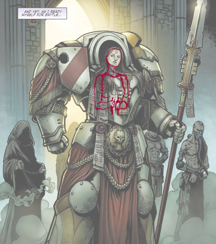 >>96730157>>96730194>>96730224you guys forget that there is reason for it in 40k. The Ecclesiarchy is not allowed to have men under arms. To accentuate the fact that they have women fighting is the whole point.The boob plate is a statement of "look we are following the rules, no men here".