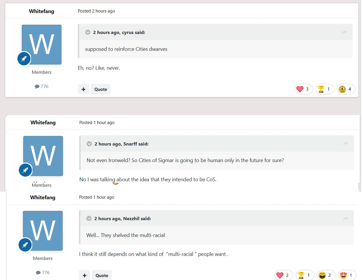new batch of whitefang comments for those of us who like to partake in rumourslop. Talks a bit about how new dwarfs were never meant for CoS, so always meant to be their own army probably. Also jolly cooperation CoS might not be totally dead.