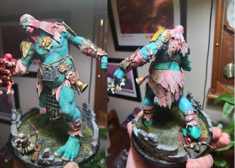 >>96746919Maybe not the most impressive but I was really proud of making it look like my ghoul gargant was breaking into some ruins to kill and eat some guys. I thought it was pretty cute