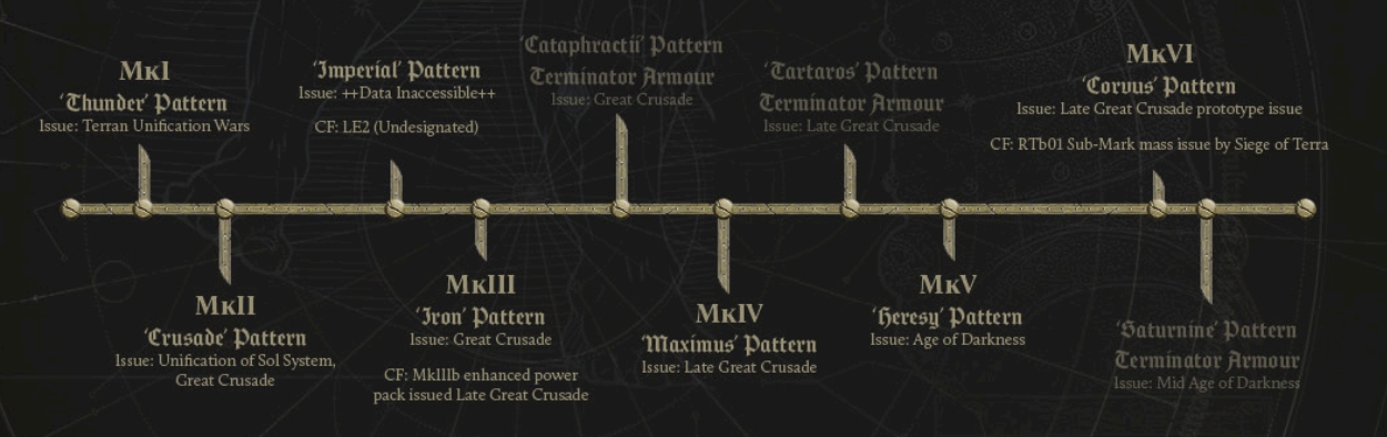 >>96754423Saturnine is from the unification of the solar system. The initial suits were rare and impossible to repair without the help of Phoebe. Near the end of the great crusade Vulkan developed a modified version that could be built outside of Phoebe and repaired by the marine chapters.