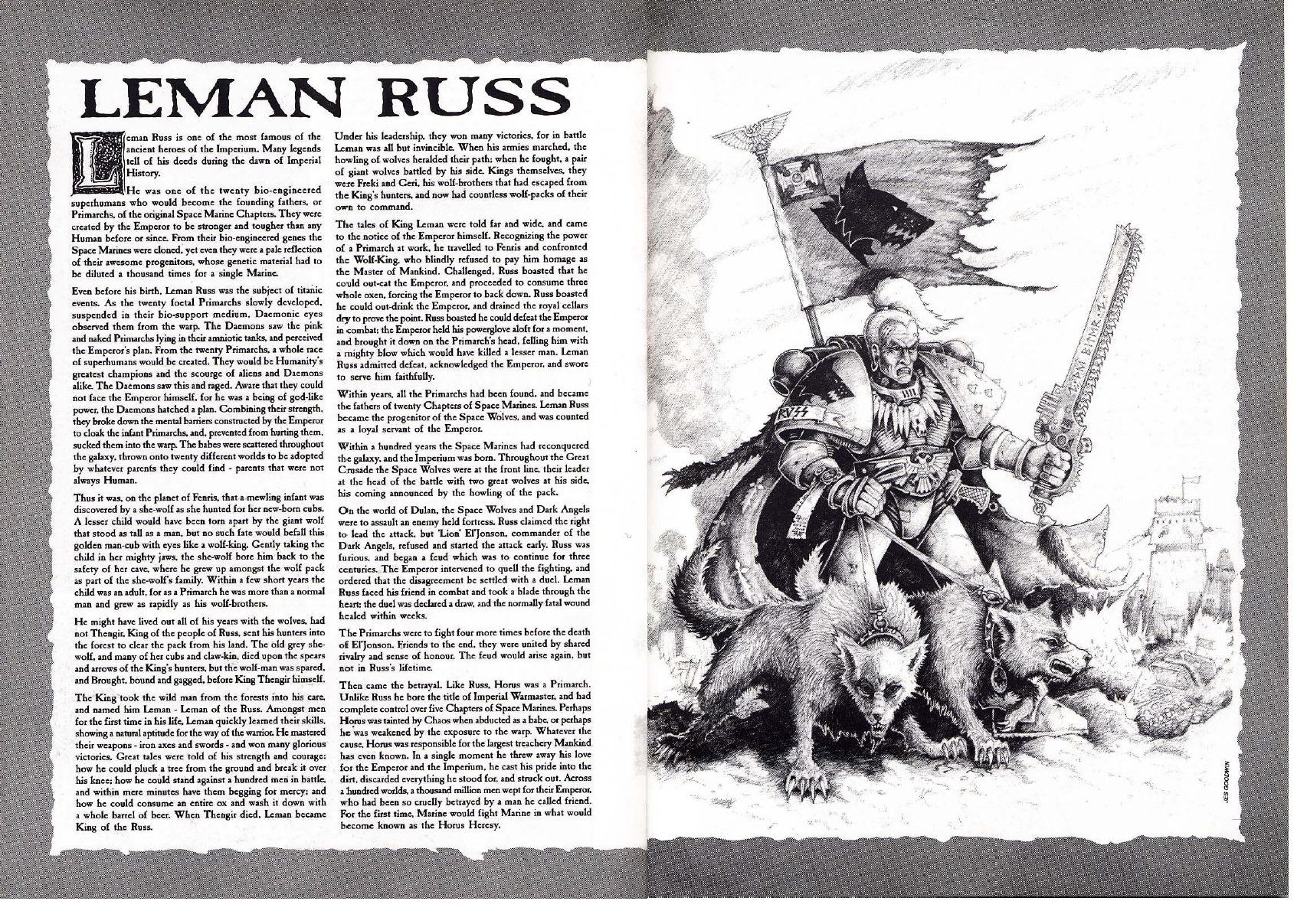 >>96757508The original design and miniature served as stand in for several commanders.Leman Russ was retconned, and by 1989 he had a nice Jes Goodwin illustration and was the first primarch to get a miniature. The FW resin mini 25 years later was a just a remake.