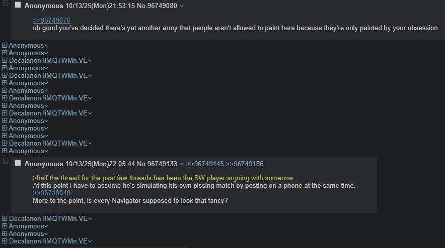 >>96750836Honestly, that's just 4chan. I haven't seen that IRL or even in normie 40k online spaces.
