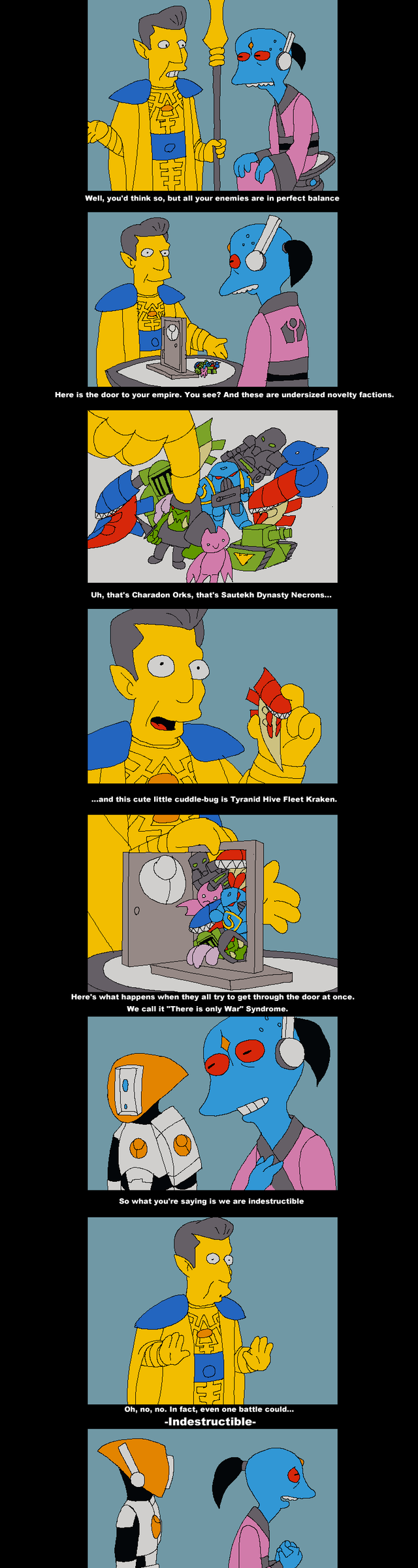 So basically the 40k universe is a world where humanity is so dominant that there’s nobody left that can give us a reasonable challenge so we just go around punching down against robots, cultists, and aliens.
