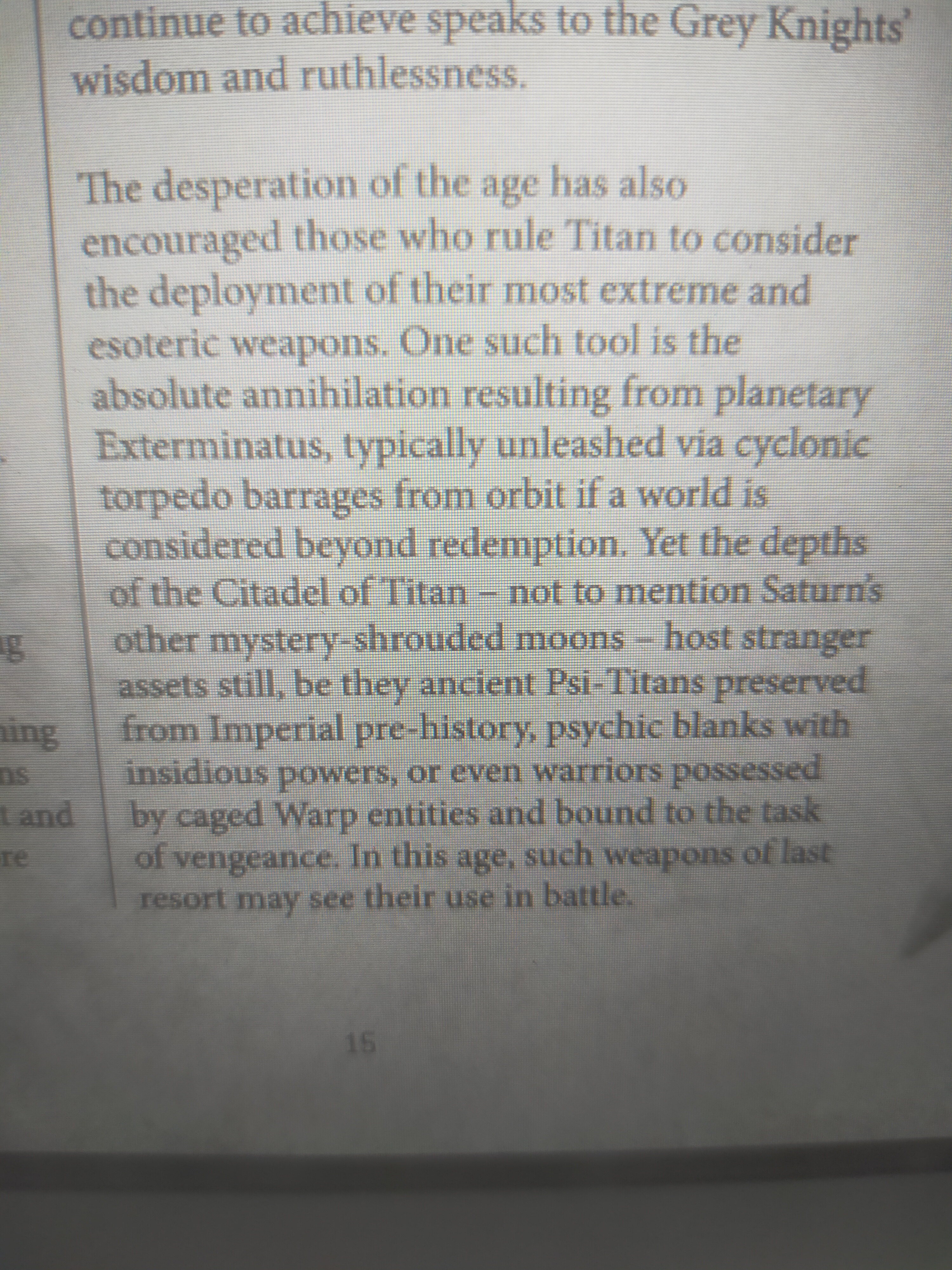 I'm reading the 10e Greyknights Codex and damn it's pretty dire for them>2 of their 8 Grandmasters are dead or missing I'm action, 1 got confirmed merked by Angron>Most of the 8 brotherhoods are suffering sever man power issues>One is at a third of it's strength>The Silver Blades which is where recruits are first sent to are losing more Grey Knights than they can recruitOf all the factions they're probably the worst off right now. They ain't taking on the Custodes anytime soon