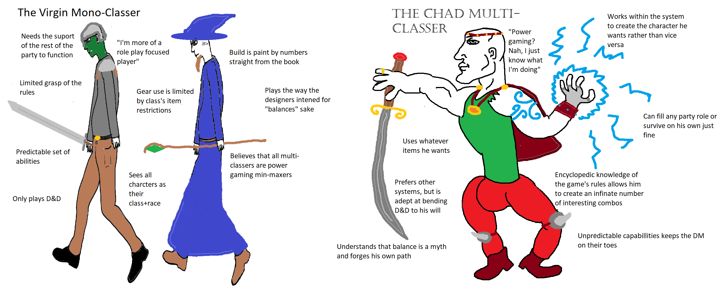 >>96762725>Doing heaps of prep =/= quality>Players will want to go their own way, usually in contradictory ways>Don't just have a narrative in your head of where everything is going to goI feel like the third one is a direct contradiction to the first two. I've learned to set up situations, for my group. "You've gotta go rescue the kidnapped lady from the lords manor." It's not a dungeon I'm planning. It's a thoughtful, well-functioning noble's manor. I tell the players they've gotta get the girl and they're on their own from then on out. Whatever they throw at me, I know exactly what's happening where in response.I didn't expect "travelling minstrels come to town," but it turned out well. Lots of climbing on rooftops, a few walls broken, and they missed every last piece of treasure.