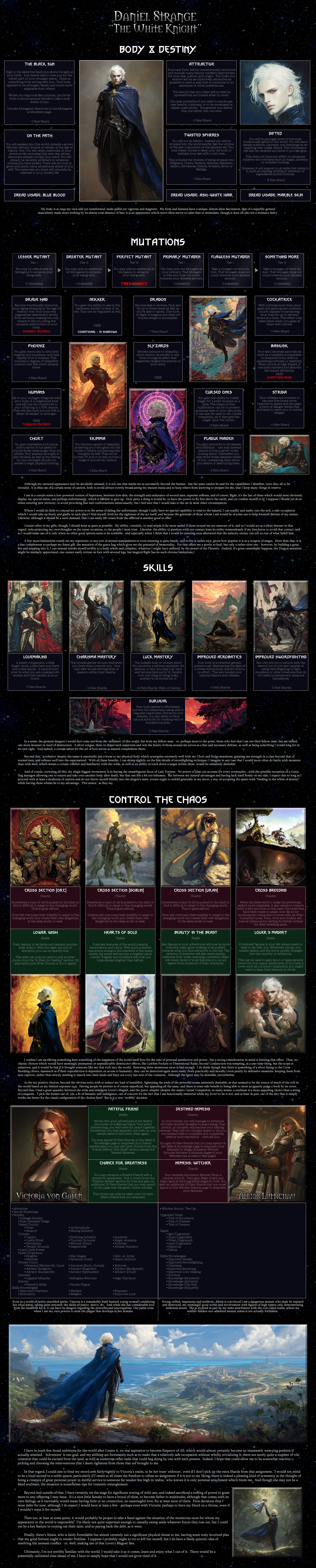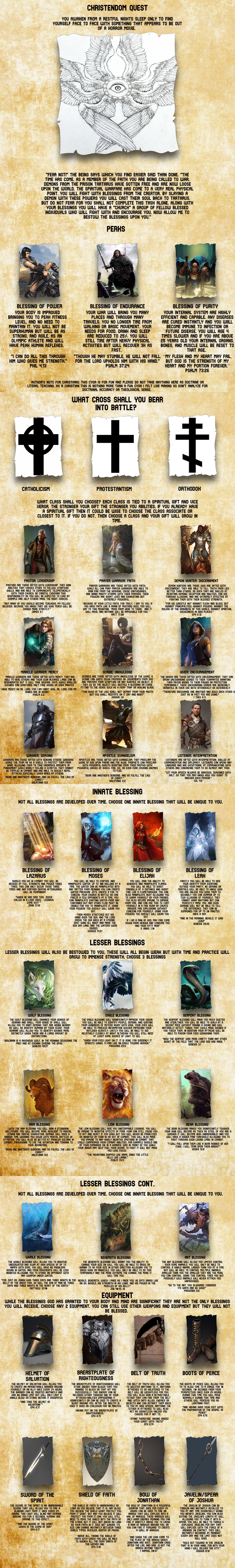 >>96771530This update makes the cyoa feel watered down compared to before. I think it's mostly the combination of the expanded drawbacks list, which allows you to take much more permissive choices and gather more blessings, and the fact that some of the blessings and inheritances were basically split in two. I don't really like it. The new treasures, methods, and companions are all good additions though. I also like how there are more examples of the wider multiverse now. Before the cyoa's cosmology was this uninteresting gray blob, but now it has some color.