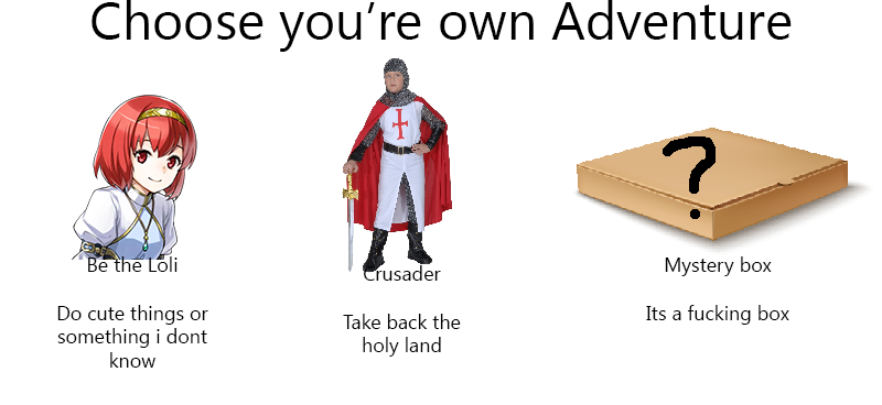 Friday 17th is here. As promised, here's my contribution for the OC challenge: Trashsword Compact, where (You) dig a sword out of a dumpster and wield it to kill demons. I had fun making this CYOA and doing it on a deadline was an interesting experience, although I'll admit this was a rush-job, the image quality is spotty and the only real criteria for balancing was my gut feeling on it. I hope you anons have fun with it. I've been excited to see the other challenge OCs since it was announced.
