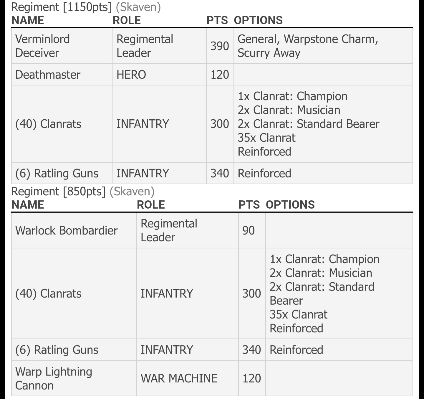 >>96778263From what I've seen the only units that really look off on that size are night goblins and giant rats. The main reason why the base size change sucks is that you have to buy new bases (or get a tray that accounts for the change).
