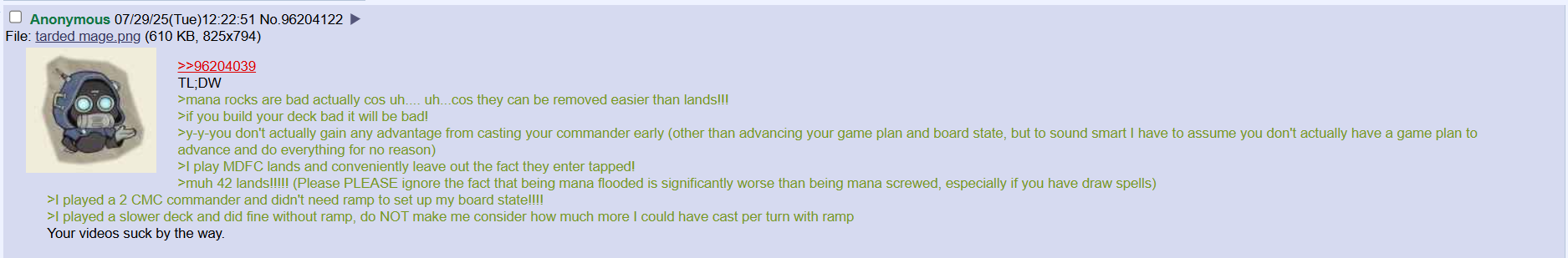 >>96785553"please dont kill my commander i just want to do something funny it's all my deck does"