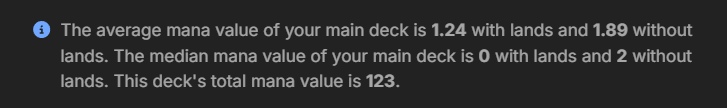 >>96786112Your deck’s total mana value is 123, it is not all 0 mana spellsAlso, the control player is playing taxes, so congrats your “cheerios” now cost 2 mana each minimum