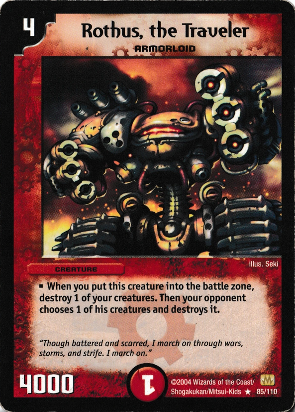 >>96790691>Infinity War felt like too much of a conclusion, most people jumped off afterwards because it felt the stakes couldn't get higher.Compare and contrast Otaria arc where wotc had just finished Urza's wild ride and killed off Yawgmoth at the cost of just about everything. Instead of trying to escalate further, they deescalated by making stuff about gladiator mages fighting each other which had a whimsical appeal that had been absent for a very long time.
