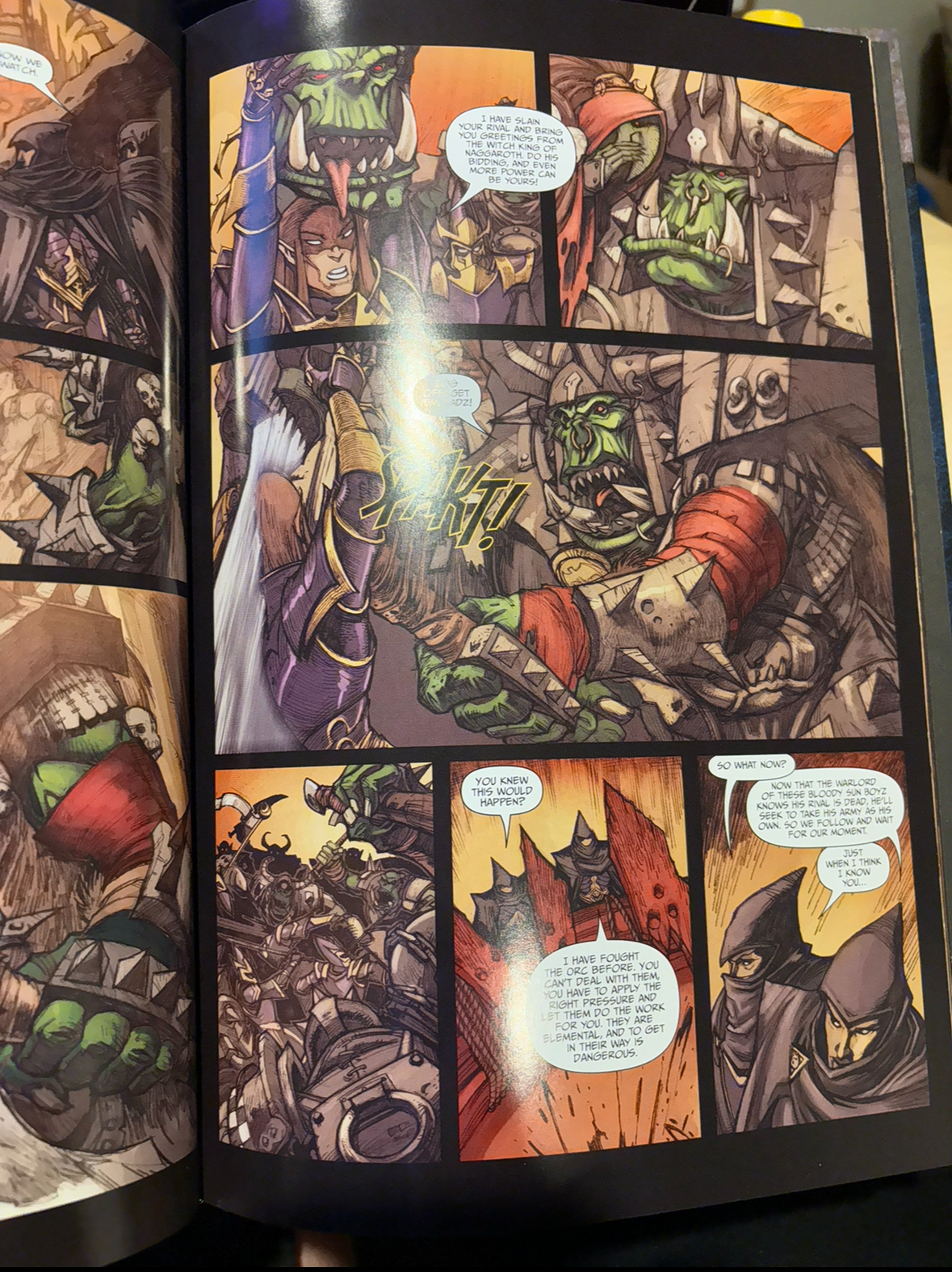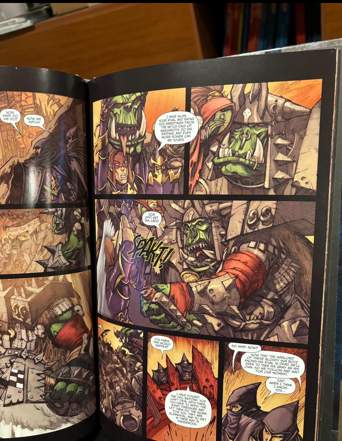 does someone have that little comic snippet from dark elves approaching an ork boss, saying something like "we offer the head of your most hated for". a goblin then whispers something into the ork bosses ear. then he chops the dark elf in two and yells something like "ZOG IT, KRUMP EM LADS!"