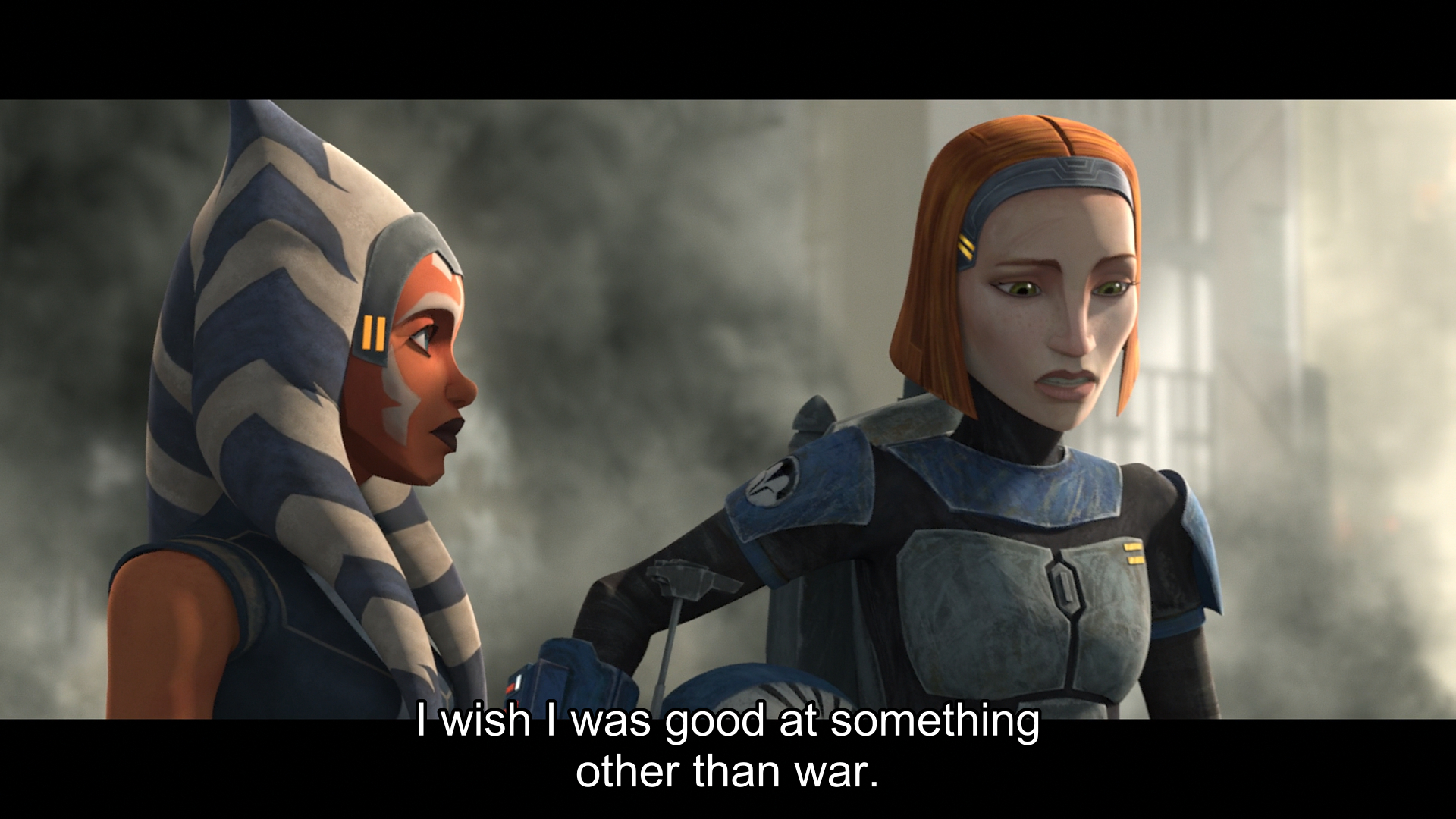 >>96836051>>96836121Arguably Bo-Katan's character was "ruined" by Disney, as the pre-buyout character was a dumb terrorist who only saw the horrors of her actions when they affected her directly (got her sister killed). Her last appearance was helping Obi-Wan escape Mandalore, everything after that is after Disney took over. Savage Oppress existed only in the Lucas-controlled Clone Wars, lived and died under George's direction.Pic related is the closest we got to Bo-Katan's redemption.