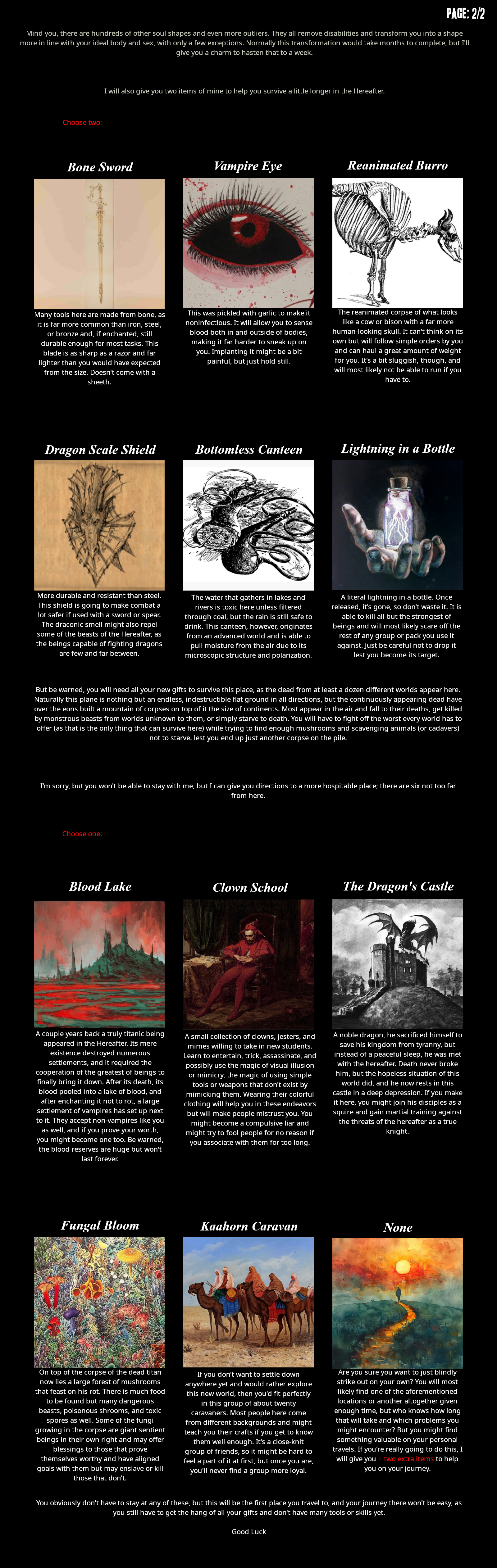 Tourist here. I remember seeing a CYOA a while back where a skeleton reincarnates (you) in a variety of vaguely oriental worlds, had a soul cultivation aesthetic, one of the ability trees was core, and a bunch of companions or rivals but I can't remember what it was called. Does anyone know what I'm talking about?