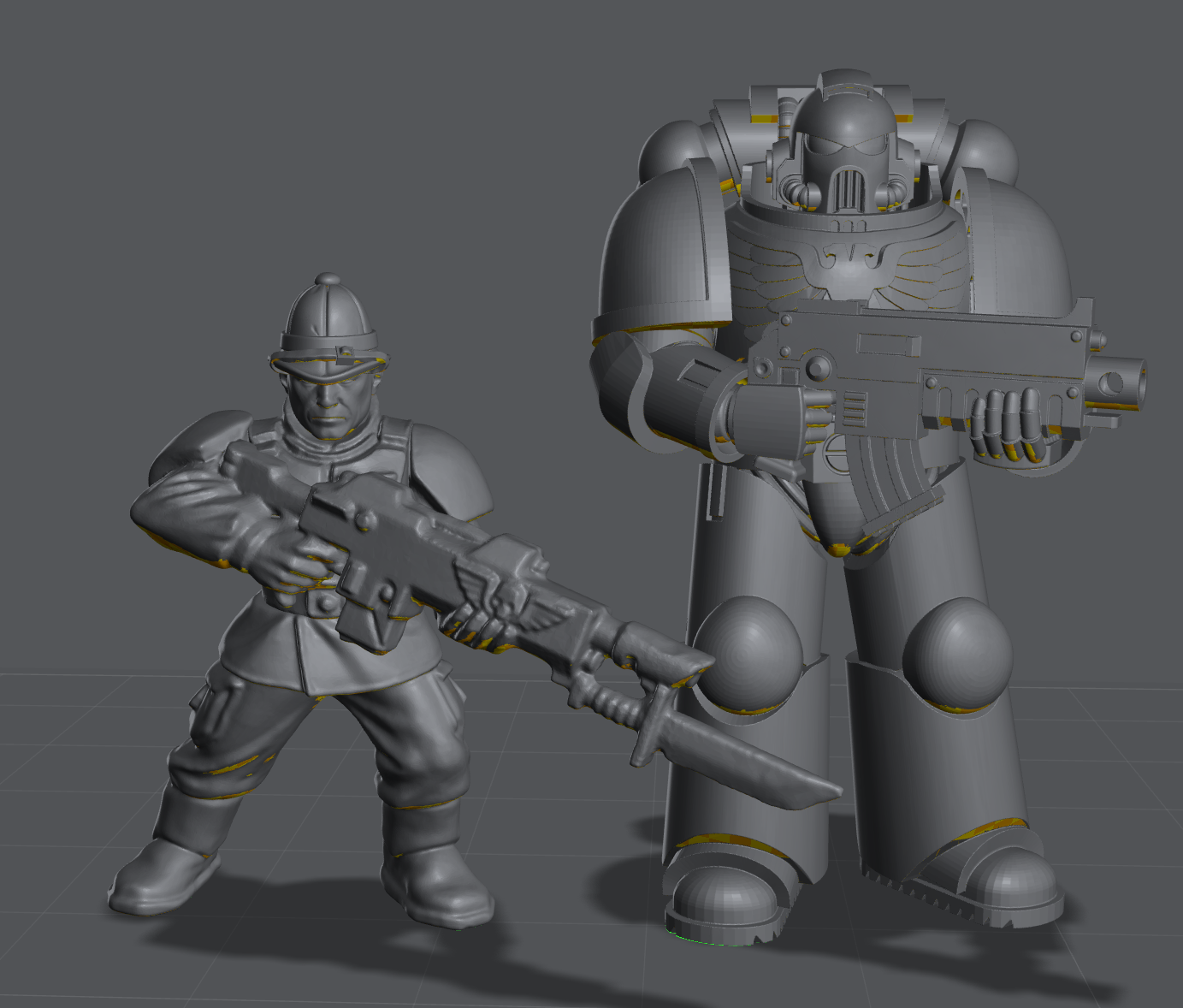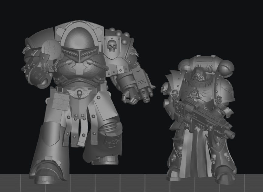>>96843642I've kitbashed a praetorian from some decent scans of the older Cadian models. I've put it next to a Fummelfinger Space Marine to show off the scale. I really like it. I plan to print these Praetorians to use in my 1:1 time, patron and RPG Braunstein campaign based on second edition with alternating actions.