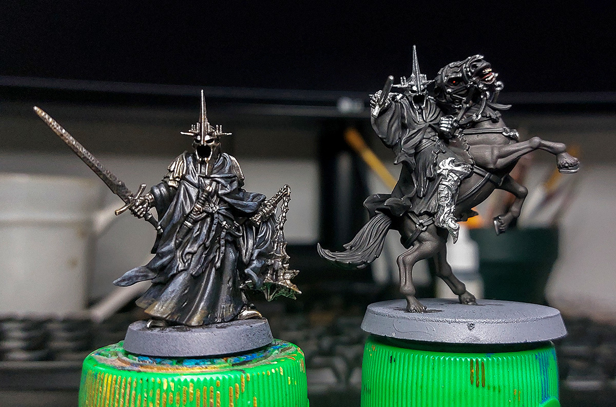 Went back and highlighted the standing Witch King model a bit because even though I wanted to avoid it looking too painted and want the range to look more movie accurate/realistic, it seemed a bit too flat without contrast. I think I'm calling it on that model, just gotta base it. Went ahead and base coated the mounted version too, damn good model.