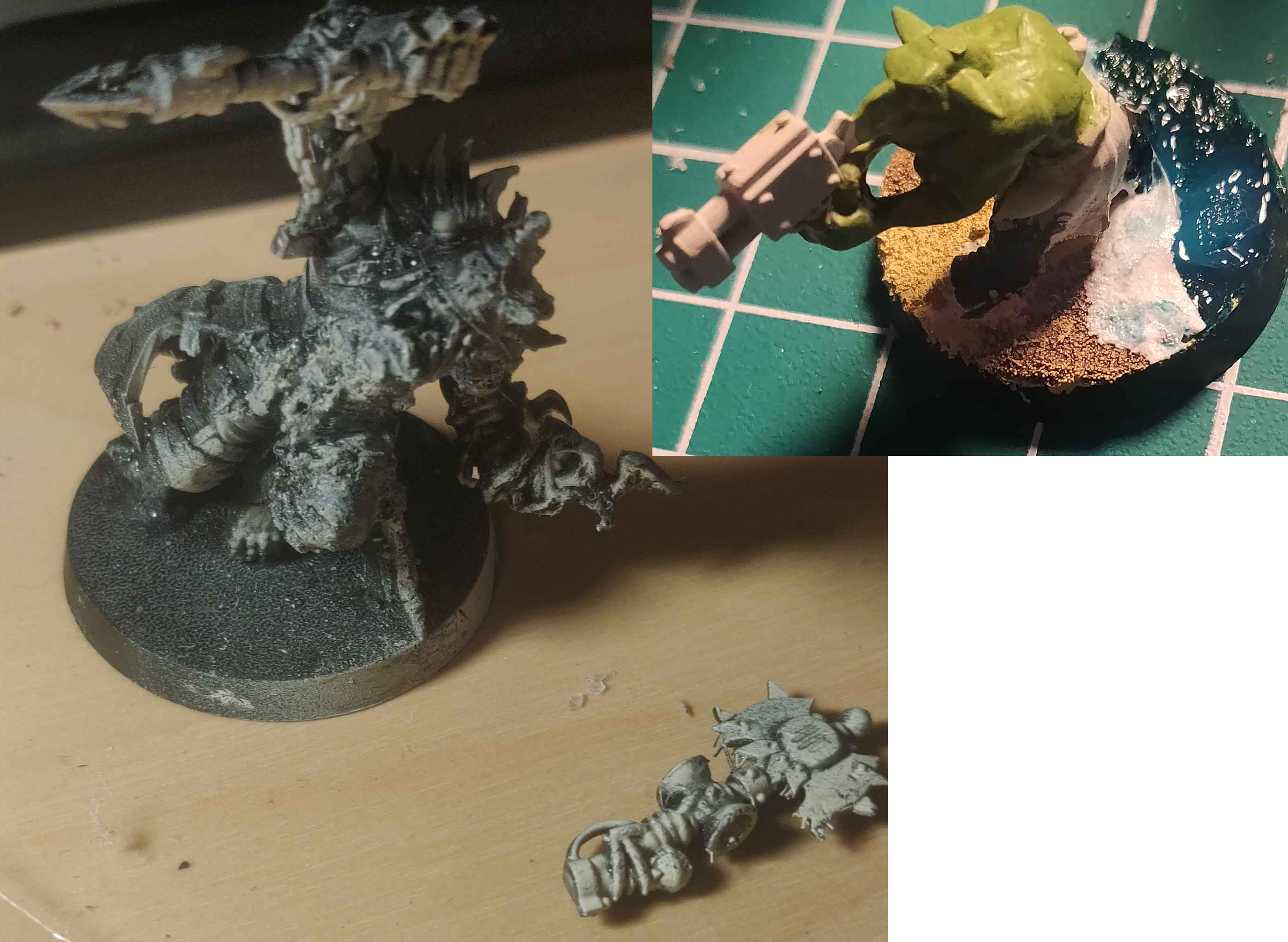 Fucked up glueing (forgot to wash it, being a resin model) this weirdboy proxy, broke off its base and staff in the process; he really went through perils of the warp I guess. Did bad on priming it too; barely salvageable, but i'll still try to paint himAny personal tips on doing beach (water+sand) base? Tried this out with vallejo & AK textured paint (sand, wanter and foam), could probably be made to look much better