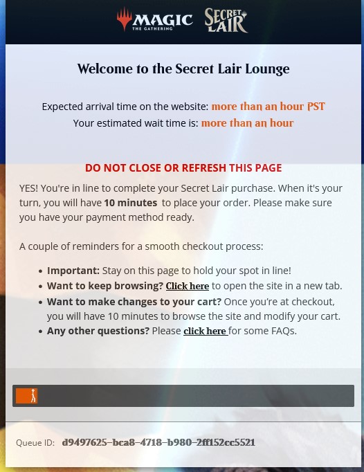 >>96851287i was insanely lucky and got in instantly, only 2min wait but then PayPal shat itself at checkout. now im back in the queue with over an hour. oh well