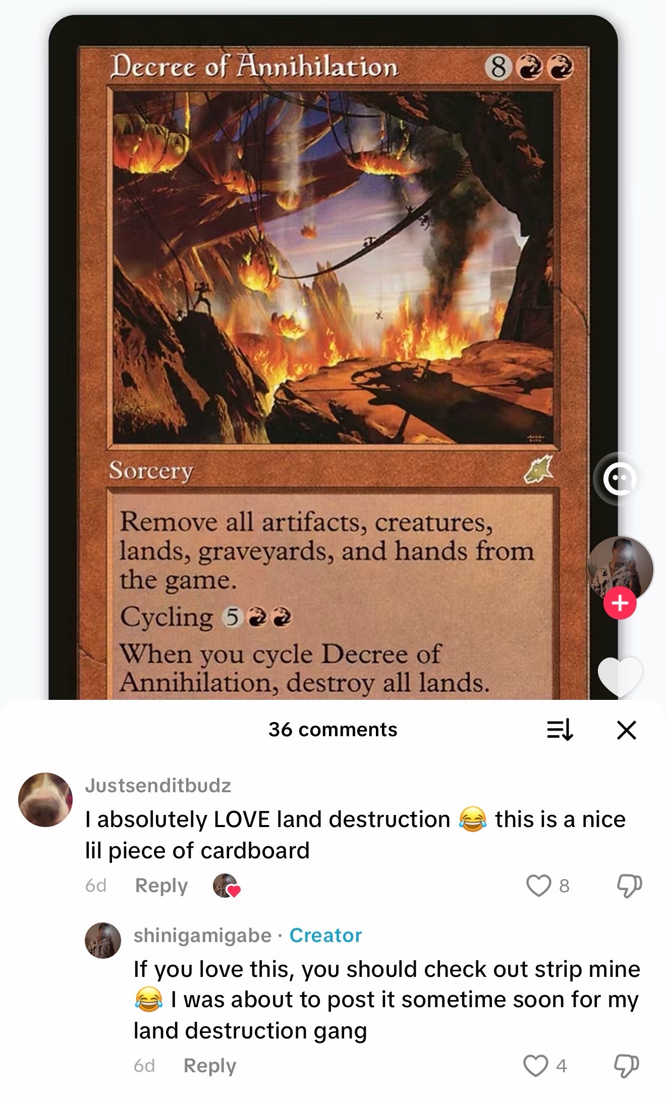 I am sooooo fucking sick of this “teehee I’m so evil” content. It’s all new players too, this shit is how they cope with losing. It’s all wish fulfillment fantasizing about how they’d totally own the “cEDH” (see: bracket 3) deck they lost to last week>DUUUDE THIS IS SOOO EVIL>I KNOW RIGHT YOU SHOULD CHECK OUT A LITTLE CARD CALLED “STRIP MINE”