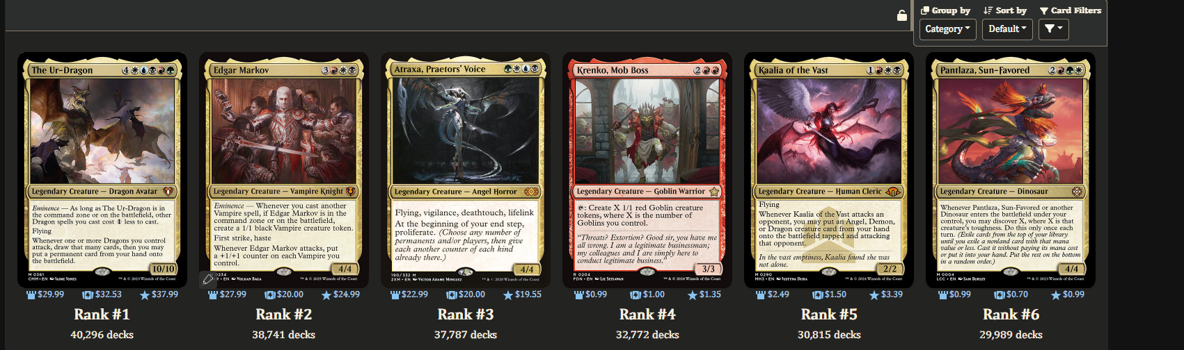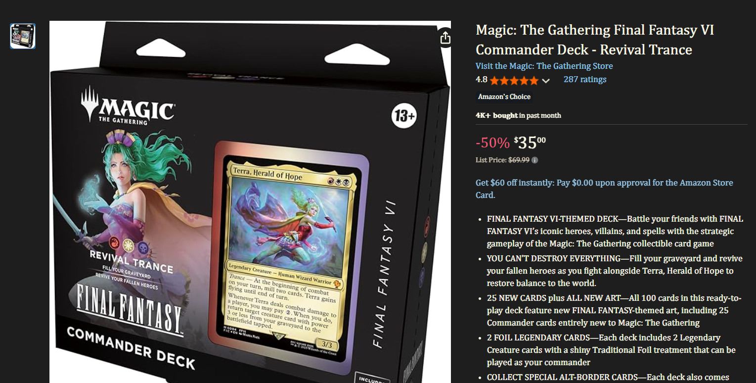Previous: >>96846537NEW SECRET LAIR ALERT Edition!>Most recent bracket system updatehttps://magic.wizards.com/en/news/announcements/commander-brackets-beta-update-october-21-2025>Outline article introducing the bracket systemhttps://magic.wizards.com/en/news/announcements/introducing-commander-brackets-beta>Current banlisthttps://magic.wizards.com/en/banned-restricted-list#commander-banned>Former Commander website, where you can learn the basics, and read the format philosophy laid down by the rules committeehttps://mtgcommander.net>Statistically see what everyone else puts in their commander decks based on what is posted to the internethttps://www.edhrec.com>Learn about PDH, Commander's budget pauper formathttps://pdhhomebase.com/https://www.pdhrec.com/>Deck list site: You can search for decks that other people have made. Authors often have comments that explain their deck strategy and card choiceshttps://www.archidekt.comhttps://www.moxfield.comhttps://www.tappedout.net>Find out what lands you can add to your deck, sorted by category, based on a chosen color identityhttps://managathering.com>Card searchhttps://scryfall.com>Proxy a deck or a cube for cheaphttps://pastebin.com/9Xj1xLdM>Preconshttps://magicprecons.com>TQ:What Playstation Secret lair are you getting today?