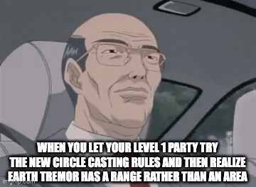 >>96887460A spell can only be effected by a single Circle Casting bonus effect. The primary caster will be safe from the Earth Tremor, but the others... Well, they could just get off the ground, climb a tree or something and support from 30 feet.