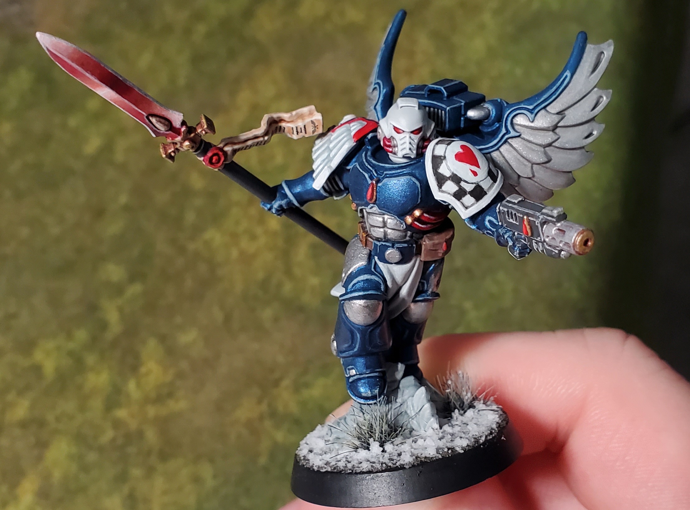 Finished the first guy of /mydudes/ sanguinary guard that I'm calling spearguard veterans. The Weeping Angels eschew the gold in favor of their chapter colors.