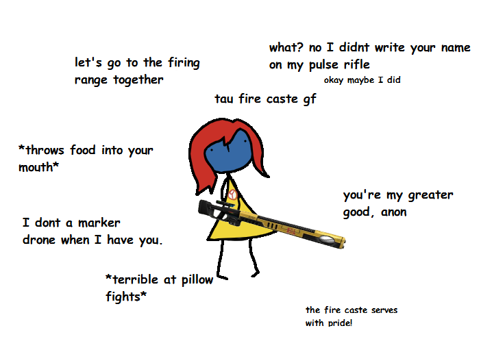 >>96885784Tau girls with giant boobs started off of /tg/, the main guy who drew it was Sexualyeti, he's one of the original drawfags.