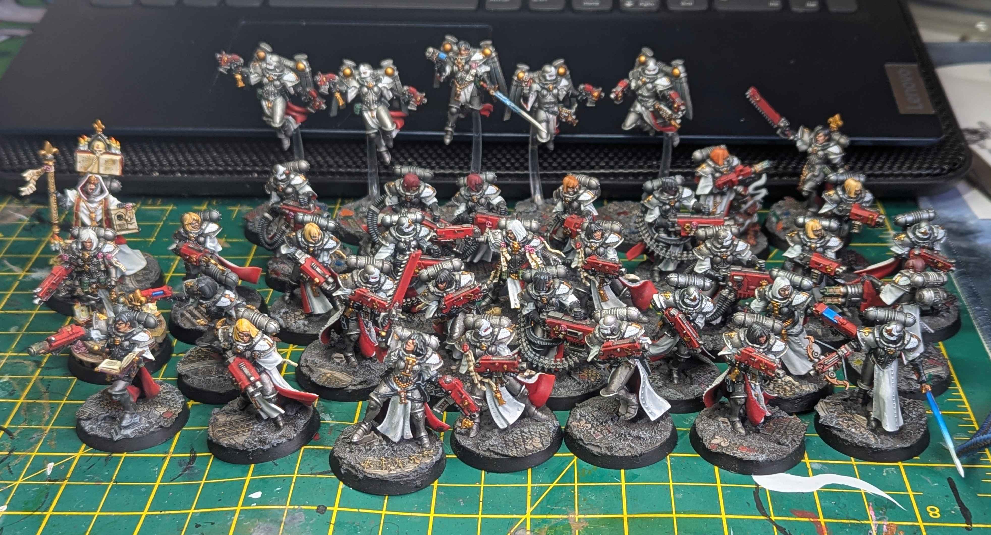 >>96909278Crikey, sisters and white, you've set yourself a task. They look excellent.>>96909288I like them anon, how'd you do the gold?>>96909296Amazing basing>>96909297Wgat are those? Proxies?