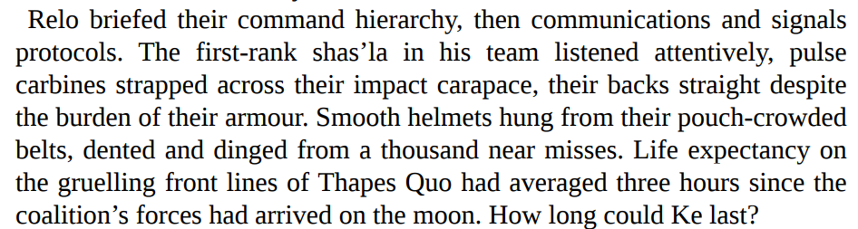 >Read the first few pages of the Elemental Council book>Tau Firewarriors said to have a lifespan of 3 hours on the battlefieldJesus Christ even the Guardsmen got 15 hours at least