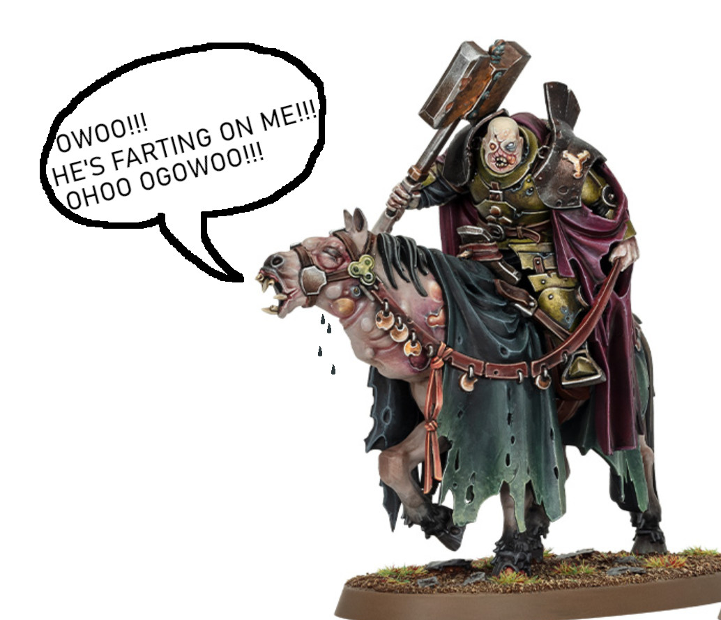 >Be WoC player>Already converted regular AoS warriors with Nurgle bits to use as warriors with the MoN>Already used the blightkings kit for Chosen with the MoN and for some aspiring champions>All these revealsFuck, I will have even more fucking units and if the blight templars become a seperate kit Id rather use them as chosen so that I have great weapons. I hope the Blightlords are at least big enough that I can just sue them as MoN Ogres.