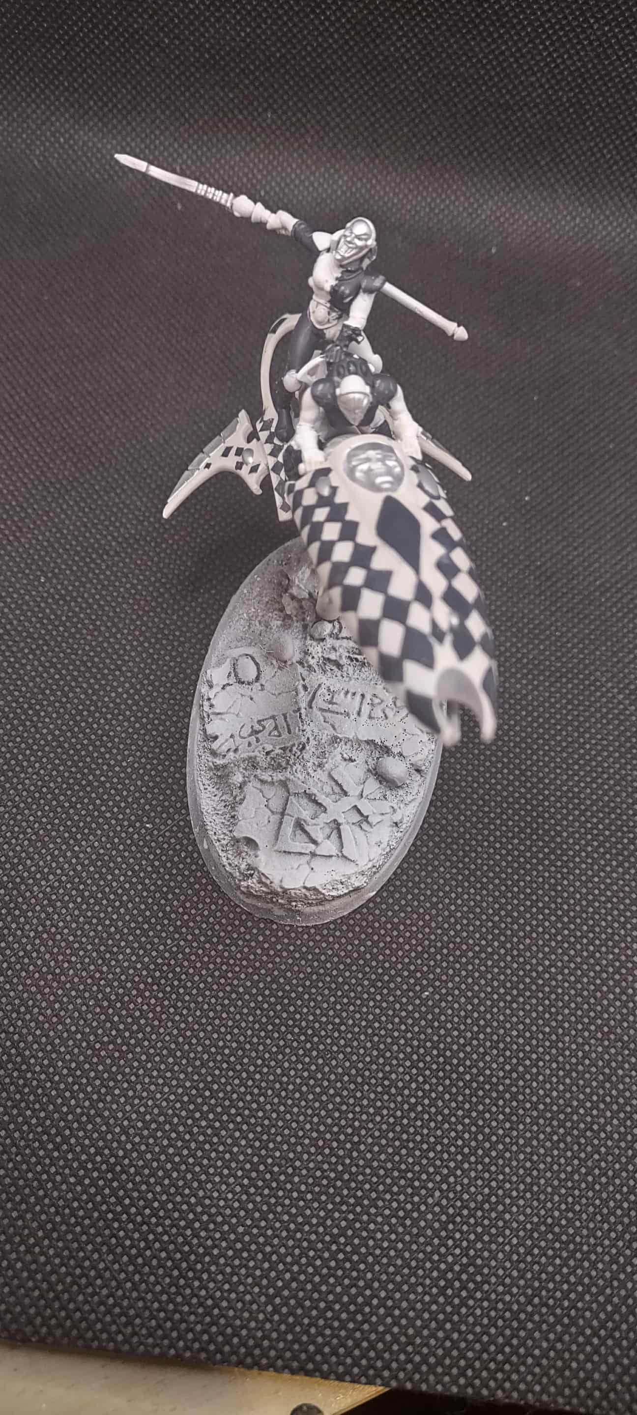 WIP of my Harlies. C+C desired.They're meant to be based on mimes so I want to keep with the black&white theme but I do also want to break it up a little bit. I'll post a picture of my finished Troupe but I feel like vehicles might need a little more to really pop.