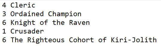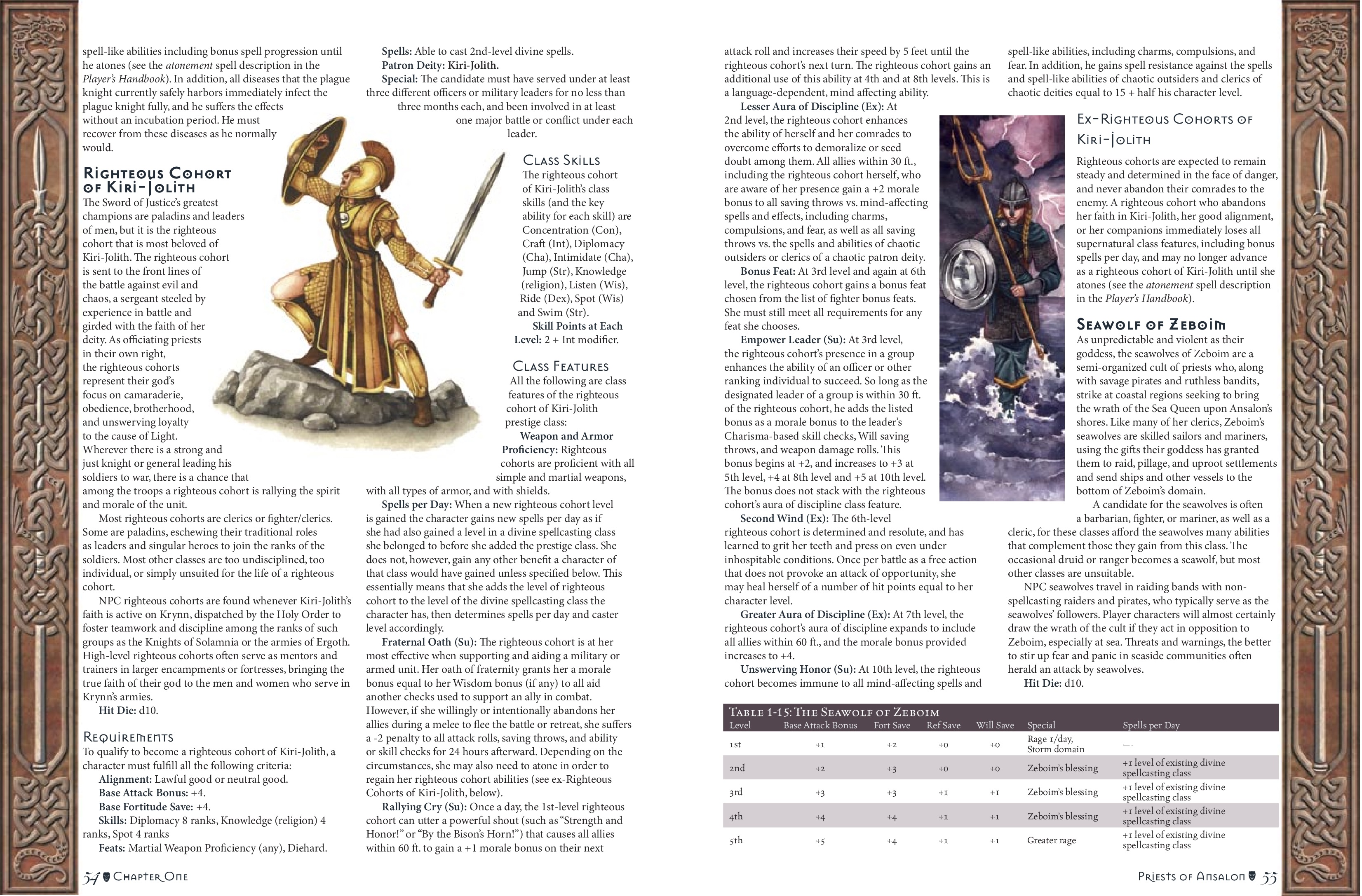 >>96947735I love the "vibes" of the 3.5e books, even with the variation.>>96947590>3 Ordained Champion>8 Knight of the RavenYup. Sounds about right.Had our DM not allowed me to take The Righteous Cohort from Dragonlance, my character would have ended up with a split kind of like that.I considered Fist of Raziel PRC too, but KotR is just much cooler, even if the constant magic circle against evil is rad as fuck.