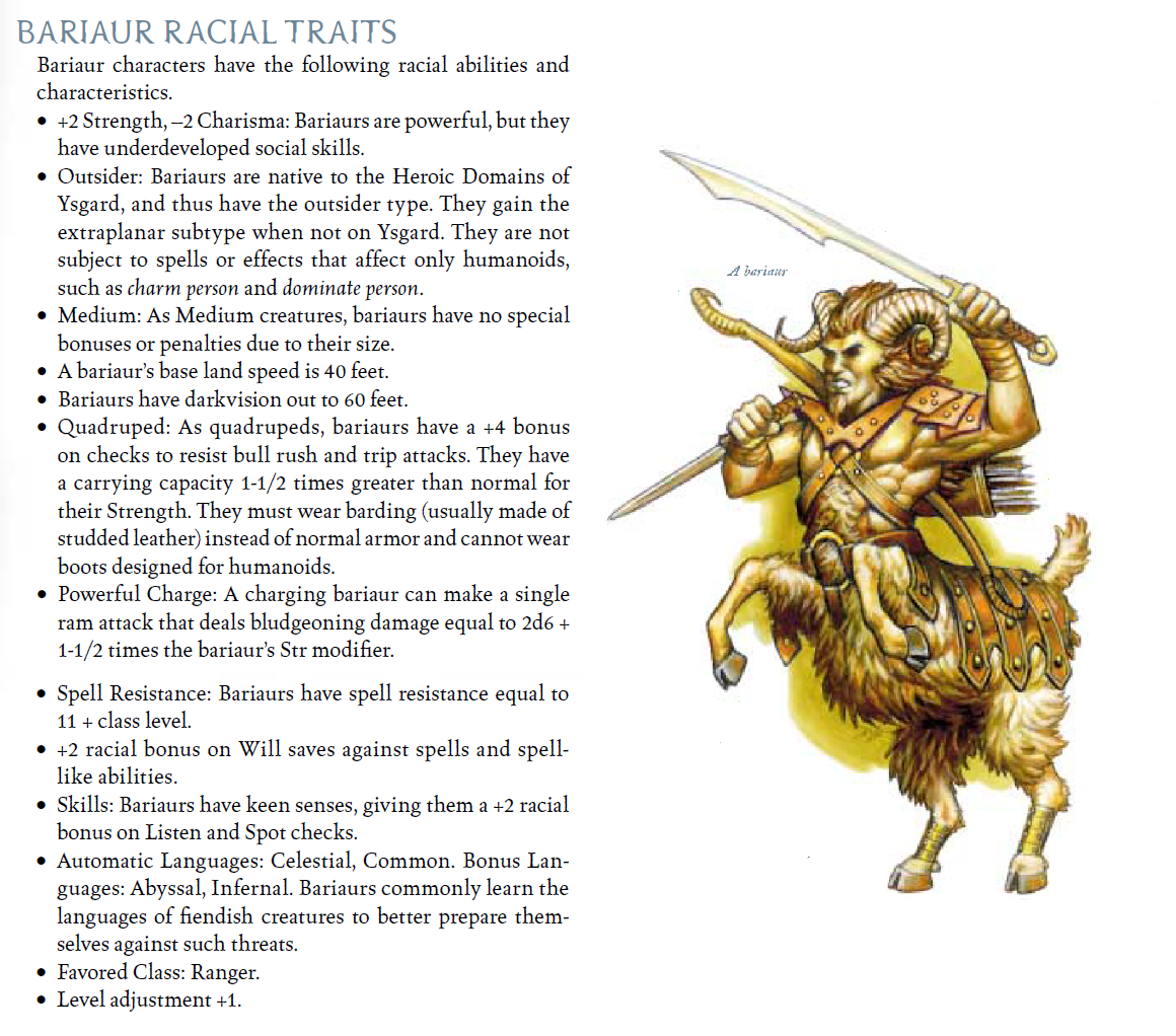 >>96960022You're thinking of the Exalted Deeds variant (planar handbook refers specifically to that variant as Exalted Bariaur). They have 3 racial hit dice and an LA+2. There is also a third variant in Dragon Magaize if that isnt confusing enough already.