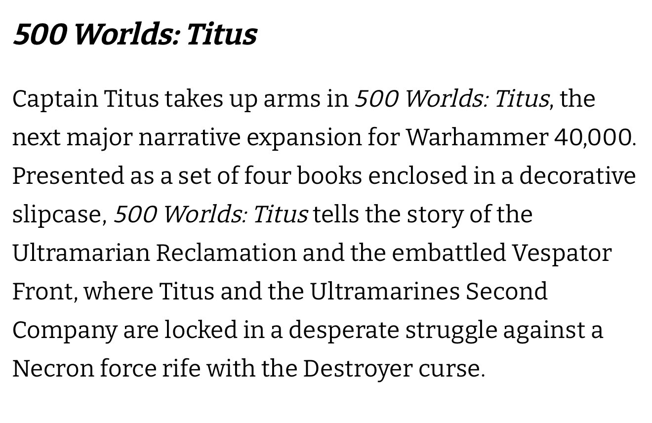 >Arks of Omen was set all over the galaxy and featured a diversity of narratives and factions involved. >500 worlds' story is centered on Ultramar and focused on the UltramarinesI am getting sick of the colour blue, guys