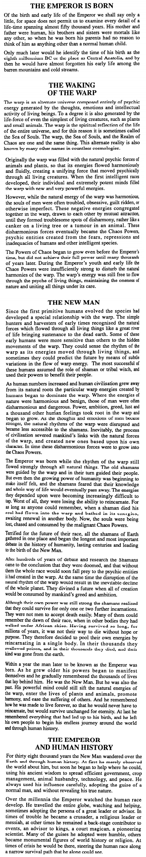 >>96948432i think what you're describing is bad writingGW had like 40+ writers or somethingand they have mixed up and retconned so much shit over the years that everyone looks bad and stupid now, and emps is at the top of that